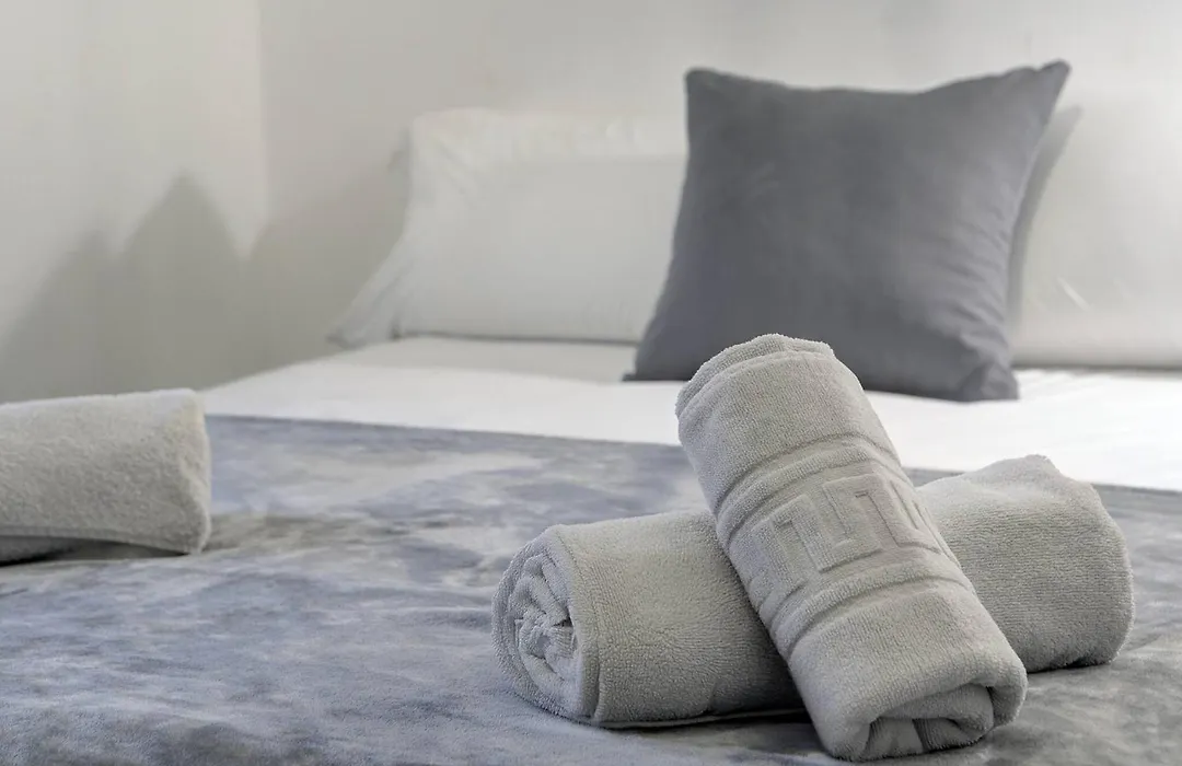 Die Gäste dieses Apartments genießen den Komfort von Handtüchern im Badezimmer.